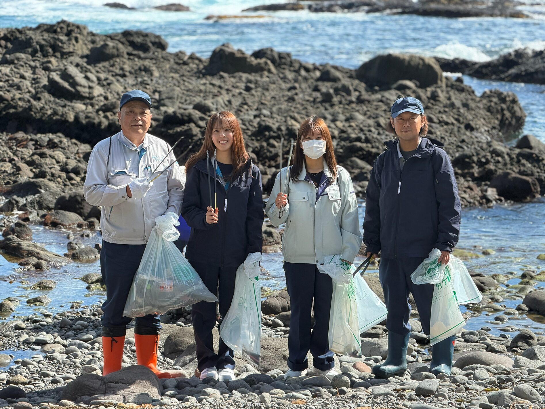 六ヶ所産業協議会さま主催の泊地区タタミ岩清掃に、当社から5名が参加しました。